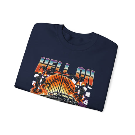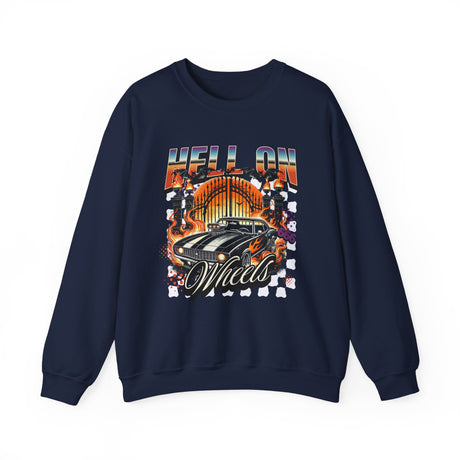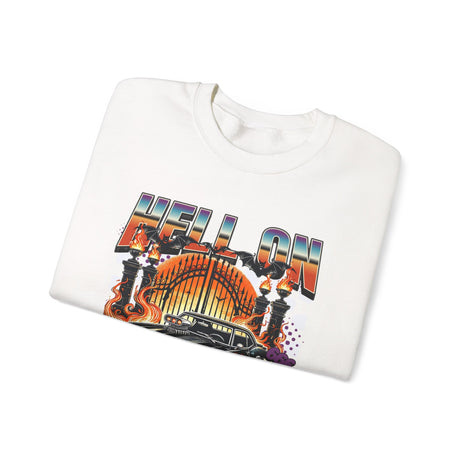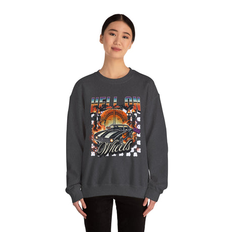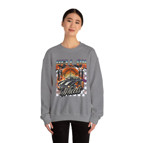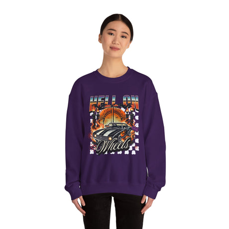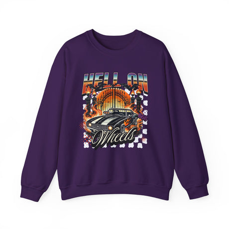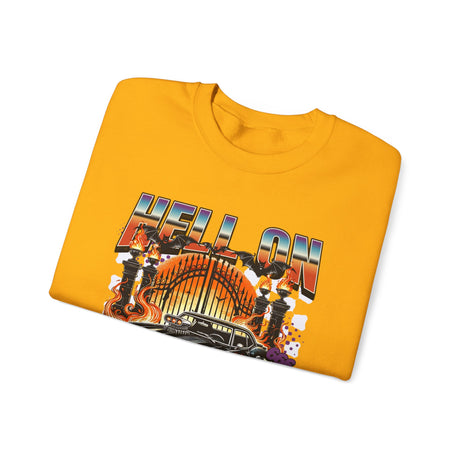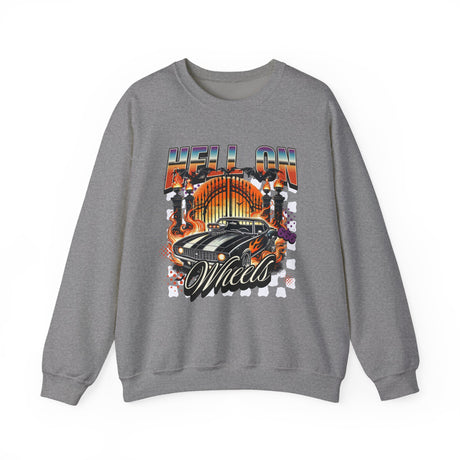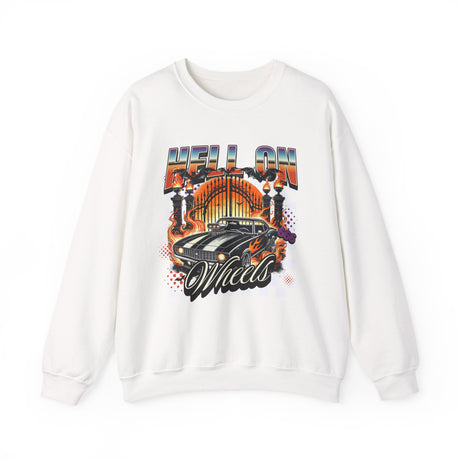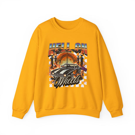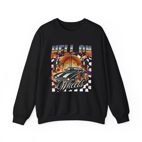 Hell on Wheels car graphic Sweatshirt | retro muscle car, flaming gates, vintage racing