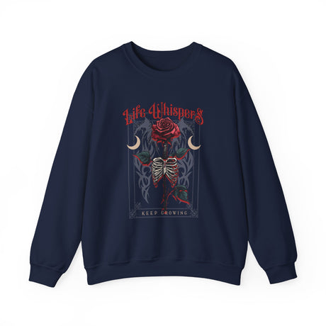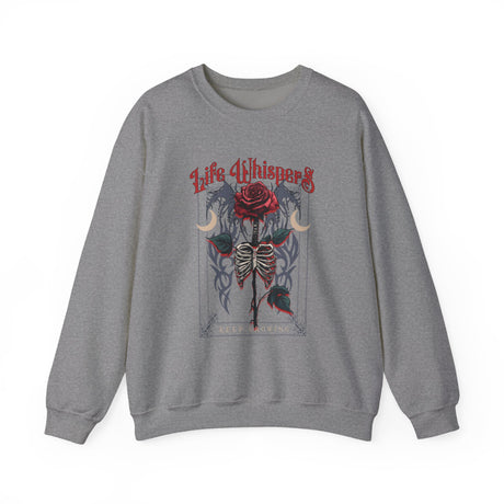 Life Whispers Keep Going Rose Skeleton Chest Crewneck Sweatshirt | Gothic Moon Graphic