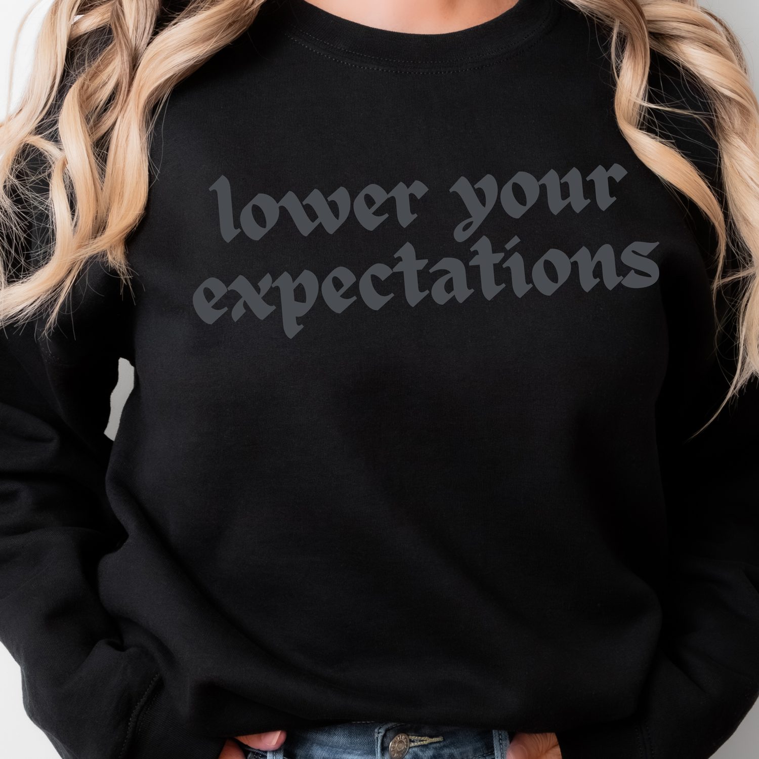 119. LOWER YOUR EXPECTATIONS. - Small / SWEATSHIRT is backordered and will ship as soon as it is back in stock.
