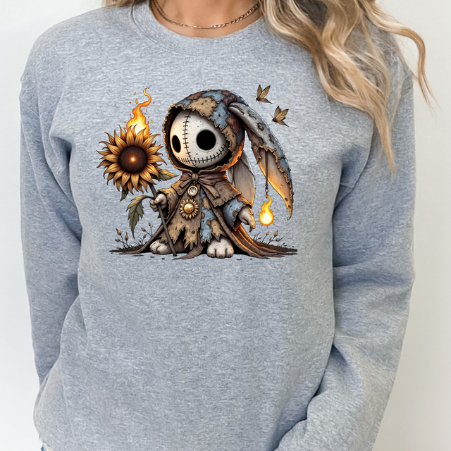 143. Grim Reaper Patchwork Sunflower Gothic Doll | Halloween Gothic Rabbit - Small / SWEATSHIRT / Athletic Grey is backordered and will ship as soon as it is back in stock.