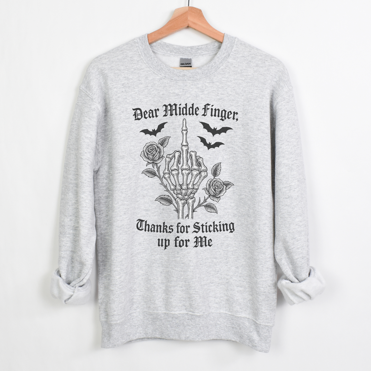 Dear Middle Finger Thanks for Sticking Up for Me - Small / ASH SWEATSHIRT is backordered and will ship as soon as it is back in stock.