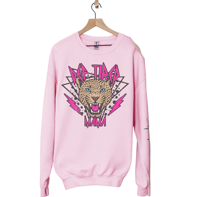 DEF TIRED MAMA WITH LEOPARD SWEATSHIRT/HOODIE
