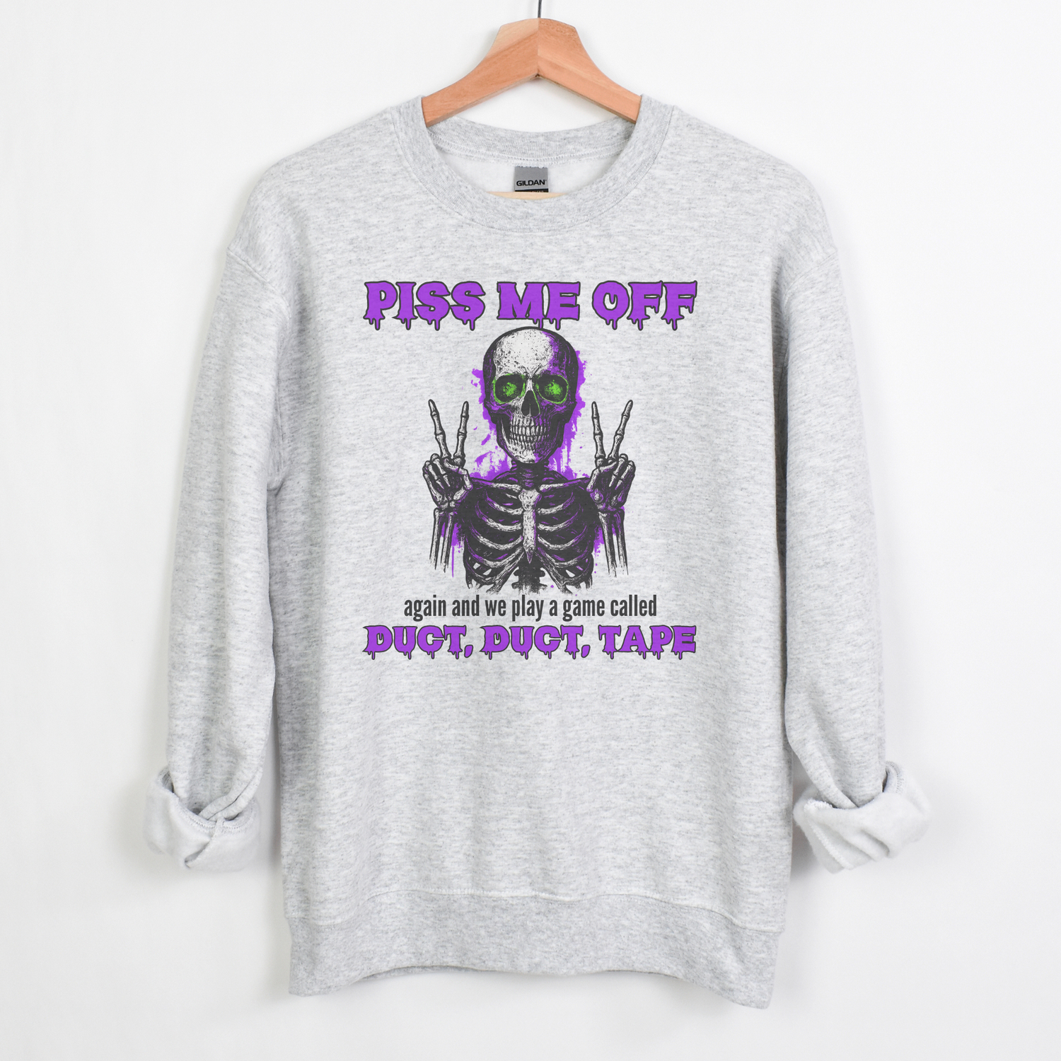 PISS ME OFF AGAIN & WE PLAY A GAME CALLED DUCT DUCT MARBLED TIE DYE OR ASH SWEATSHIRT/HOODIE (Copy)