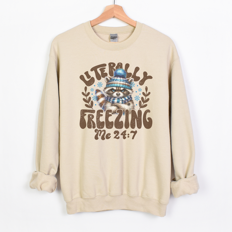 RACOON LITERALLY FREEZING MARBLED TIE DYE OR SAND SWEATSHIRT