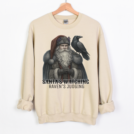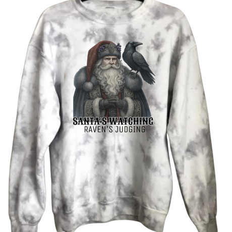 SANTA'S WATCHING, RAVEN'S JUDING MARBLED GREY TIE DYE OR SAND SWEATSHIRT