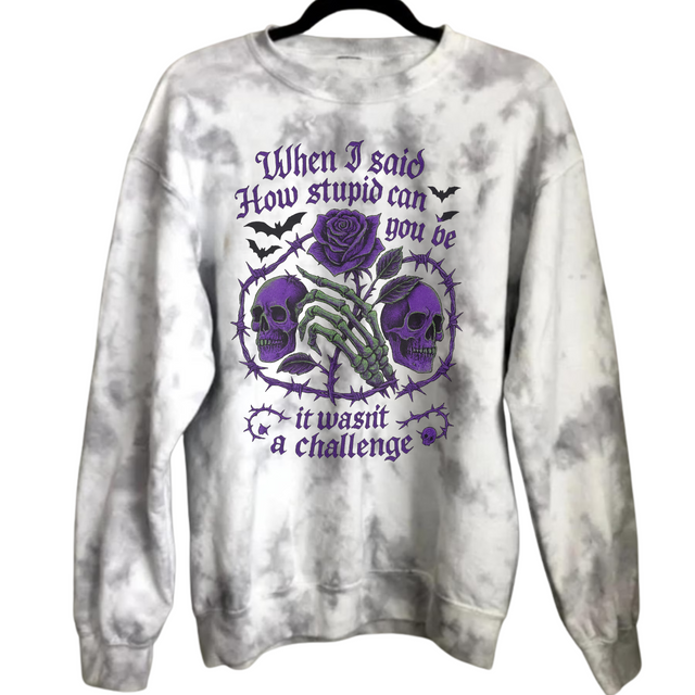 GREY MARBLED TIE DYE When I Said How Stupid Can You Be - Small / TIE DYE SWEATSHIRT is backordered and will ship as soon as it is back in stock.