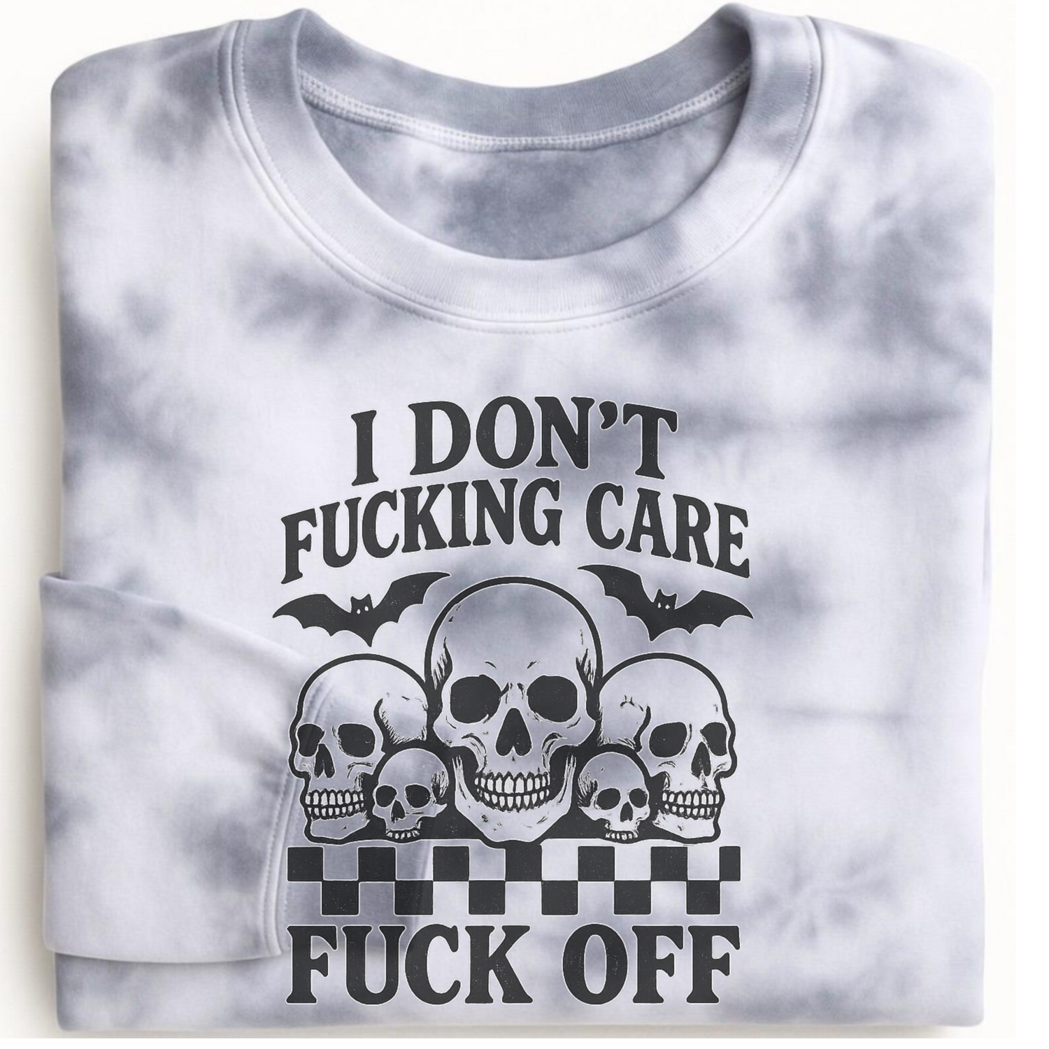 I DON'T FUCKING CARE, FUCK OFF MARBLED TIE DYE OR ASH SWEATSHIRT/HOODIE
