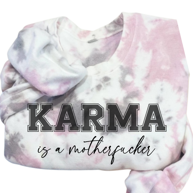KARMA IS A MOTHERFUCKER PINK & GREY MARBLED & MATCHING JOGGERS - Small / pink and grey TIE DYE SWEATSHIRT is backordered and will ship as soon as it is back in stock.