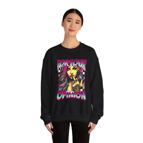 $25.99Unit price /UnavailableFor Your Opinion graphic crewneck, edgy neon girl illustration