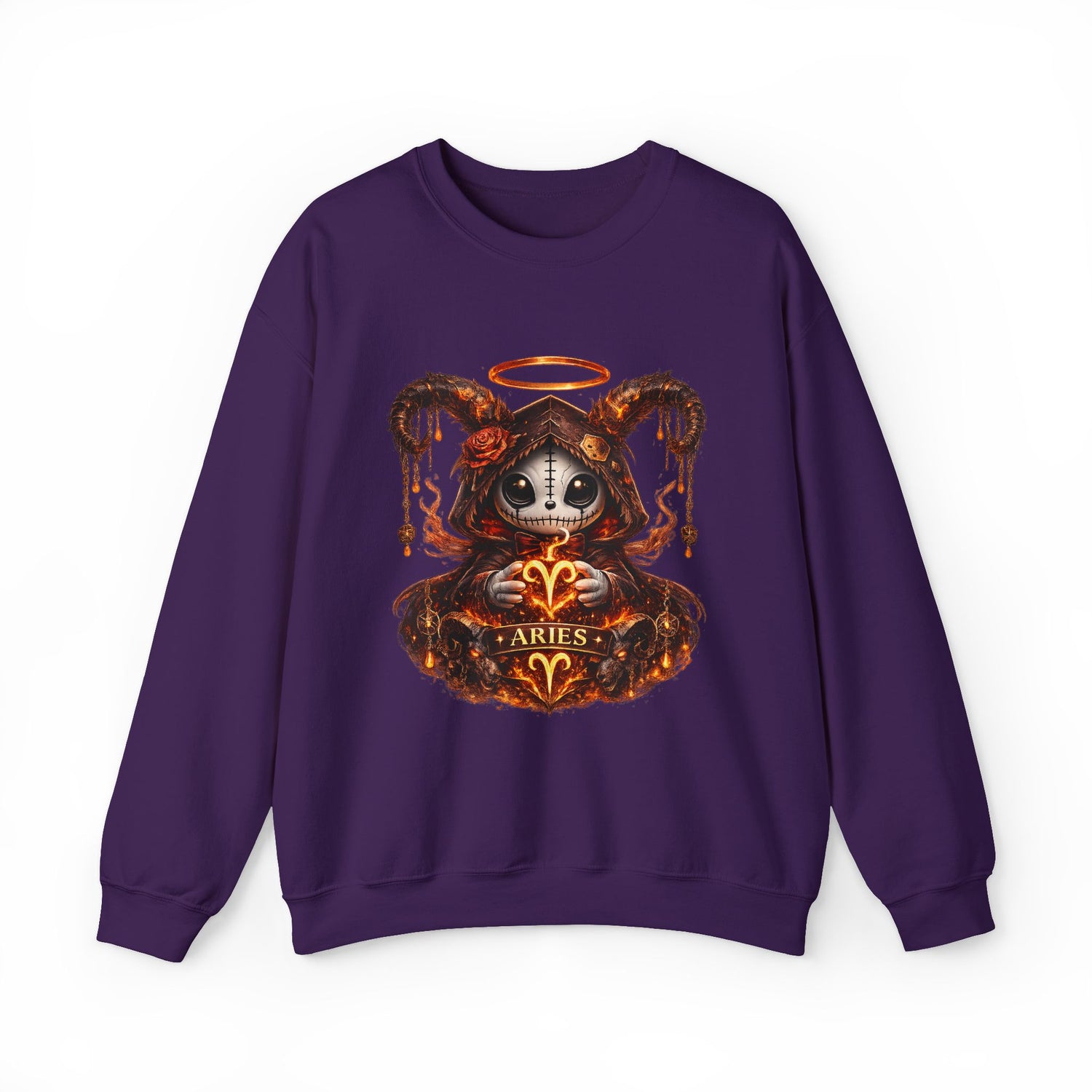 Aries Skull Mystic Illustration Sweatshirt | Zodiac Ram, Dark Angel Halo