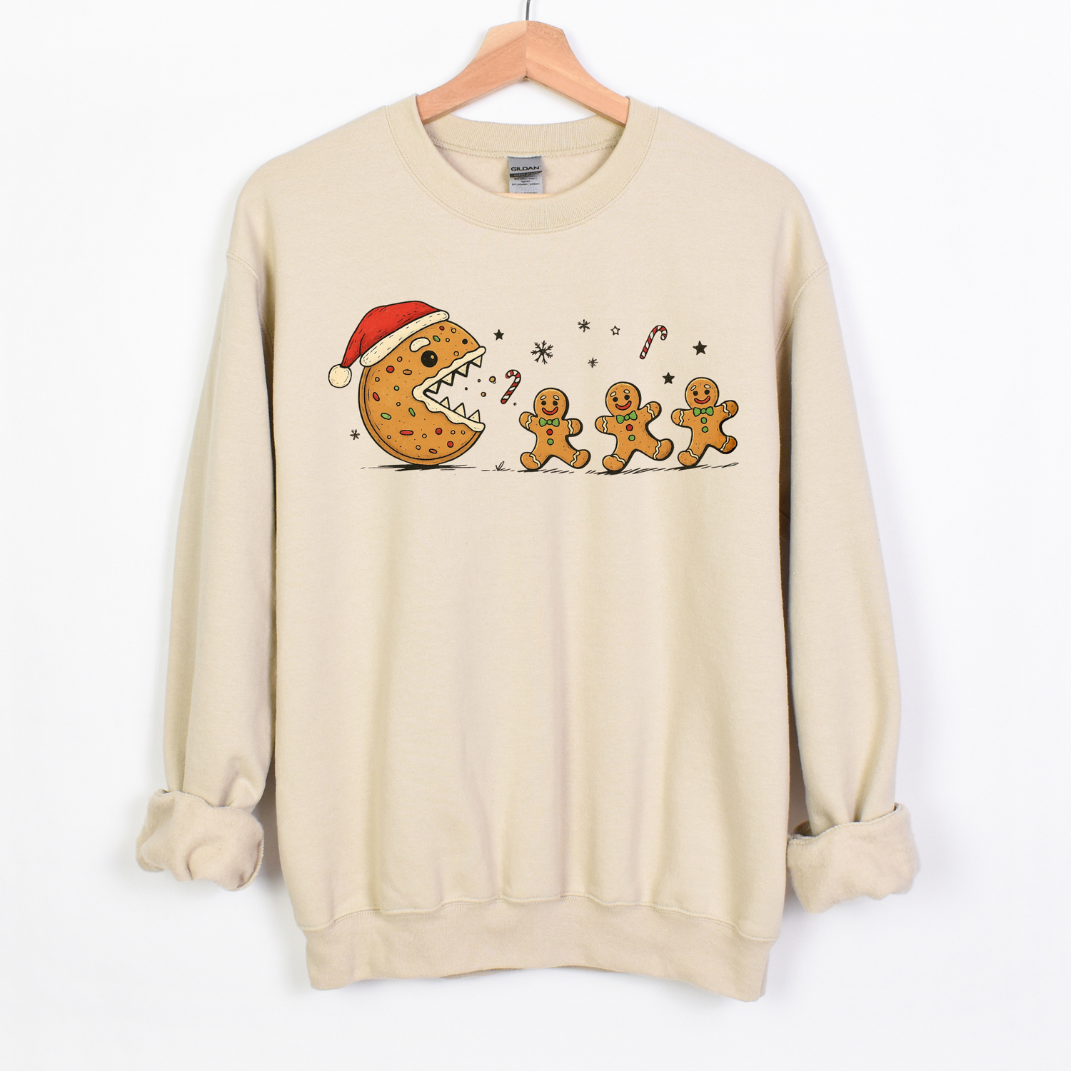 COOKIE CHASING GINGERBREAD MEN - Small / SAND SWEATSHIRT is backordered and will ship as soon as it is back in stock.