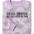DEAD INSIDE BUT PETTY AS FUCK - SLEEVE GRAPHIC FAFO, I WILL WAIT PURPLE & GREY MARBLE TIE DYE SWEATSHIRT